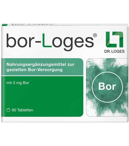 Anwendungsgebiet von Bor-loges TablettenSpurenelemente leisten einen wichtigen Beitrag zur Gesundheit. Das unbekannte Spurenelement Bor. Für unseren gesunden Calcium-, Magnesium-, Phosphat- und Vitamin-D-Haushalt ist Bor besonders wichtig. Die Funktionen von Bor sind sehe vielfältig. Es lässt sich über Nahrung wie getrocknete Obstsorten (Pflaumen, Rosinen), Avocado, Nüsse und Brokkoli aufnehmen. So schnell wie Bor allerdings aufgenommen wird, wird es über die Nieren auch wieder ausgeschieden. Daher ist eine regelmäßige Aufnahme besonders wichtig. Um dem Körper ausreichend Bor zur Verfügung zu stellen, gibt es Bor-loges Tabletten. Bor-loges Tabletten ist geeignet für alle mit niedrigem Bor-Serum-Spiegel. Wirkstoffe / Inhaltsstoffe / ZutatenBor-loges Tabletten enthält: Die Tagesdosis (1 Tablette) enthält: 3 mg Bor als Natriumborat Zutaten: Füllstoffe: Calciumphosphate, Cellulose Dinatriumtetraborat, Überzugsmittel: Hydroxypropylmethylcellulose Trennmittel: Magnesiumsalze der SpeisefettsäureGegenanzeigenBei bekannter Überempfindlichkeit gegenüber einem der oben genannten Inhaltsstoffe sollte das Produkt nicht verwendet werden. DosierungVerzehrempfehlung von Bor-loges Tabletten: Täglich 1 Tablette mit ausreichend Flüssigkeit. Der Verzehrzeitpunkt kann frei gewählt werden.HinweiseNahrungsergänzungsmittel sind kein Ersatz für eine ausgewogene und abwechslungsreiche Ernährung und eine gesunde Lebensweise. Die angegebene empfohlene tägliche Verzehrmenge darf nicht überschritten werden. Außerhalb der Reichweite von kleinen Kindern aufbewahren. Bor-loges Tabletten können in Ihrer Versandapotheke www.juvalis.de erworben werden. ...