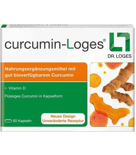 Nahrungsergänzungsmittel sind kein Ersatz für eine abwechslungsreiche und ausgewogene Ernährung und eine gesunde Lebensweise. curcumin-Loges® – die Kraft der Kurkuma-Wurzel optimal nutzen curcumin-Loges® vereint traditionelles Wissen mit moderner Mizellentechnologie. Die Wirkung von Kurkuma spielt seit Jahrhunderten eine wichtige Rolle in der Ayurveda und Traditionellen Chinesischen Medizin. Die curcumin-Loges® Kapseln enthalten wertvolles Curcumin aus der Kurkuma-Wurzel und nutzen die patentierte Mizellentechnologie, um eine hohe Bioverfügbarkeit zu gewährleisten.*,** Da Curcumin normalerweise schlecht wasserlöslich ist, kann es der Körper nur schlecht aufnehmen. Die Mizellentechnologie verbessert die Aufnahme erheblich: Mizellen umschließen die Curcumin-Moleküle und transportieren sie direkt an den Zielort – den Magen-Darm-Trakt. Ähnliche Mizellen stellt der menschliche Körper beispielsweise auch her, um die fettlöslichen Vitamine aus der Milch aufnehmen und verwerten zu können. Dank dieser patentierten Technologie ist das Curcumin in curcumin-Loges® 185-fach höher bioverfügbar als in herkömmlichen Kurkuma-Extrakten.*,** Wissenswert: Viele Kurkuma-Präparate gibt es in Pulverform. Da Pulver schlecht wasserlöslich ist, sind diese jedoch schlecht bioverfügbar, nämlich 1-fach im Vergleich zur 185-fach höheren Bioverfügbarkeit** von curcumin-Loges®. Manche Präparate enthalten aus diesem Grund Piperin, doch selbst damit wird nur eine 20-fach höhere Bioverfügbarkeit8 erreicht. Dank der besonderen Mizellentechnologie nach dem Vorbild der Natur erreicht curcumin-Loges® ein 185-fach höhere Bioverfügbarkeit, verglichen mit einem herkömmlichen Kurkuma-Extrakt.** Zusätzlich enthalten die Kapseln die empfohlene Tagesdosis an Vitamin D, sodass sich Kurkuma und Vitamin D zusammen einnehmen und die positiven Eigenschaften sinnvoll kombinieren lassen. Zutaten Emulgator: Polysorbat 80; Gelatine (Rind), Feuchthaltemittel: Glycerin; Kurkuma-Extrakt, Cholecalciferol (Vitamin D3) Inhaltsstoffe Pro Kapsel Pro Tagesdosis (2 Kapseln) Kurkuma-Extrakt davon Curcuminoide davon Curcumin 50,4 mg 43 mg 36 mg 100,8 mg* 86 mg* 72 mg* Vitamin D 10 μg (400 I.E.) 20 μg (800 I.E.)** *Keine Referenzmenge nach LMIV vorhanden **Entspricht 400 % NRV (Nutrient Reference Values; Referenzmenge nach LMIV) Verzehrempfehlung Morgens und abends je 1 Kapsel mit ausreichend Flüssigkeit schlucken. Generelle Hinweise Nahrungsergänzungsmittel sind kein Ersatz für eine ausgewogene und abwechslungsreiche Ernährung und eine gesunde Lebensweise. Die angegebene empfohlene tägliche Verzehrmenge darf nicht überschritten werden. Kurkuma-Präparate sollten bei Verschluss der Gallenwege (z. B. durch Gallensteine) nicht verwendet werden. Für Kinder und Jugendliche sowie Schwangere und Stillende kann curcumin-Loges® aufgrund zu geringer Erfahrungen nicht empfohlen werden. Bei Curcumin handelt es sich um einen natürlichen Stoff, der Farbschwankungen unterliegen kann. Die Kapselfarbe kann daher leicht variieren.... ...