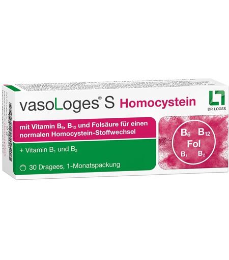 Anwendungsgebiet von Vasologes S Homocystein DrageesVasologes S Homocystein Dragees mit der einzigartigen Spezialkombination aus B-Vitaminen. Die gezielte Versorgung mit B-Vitaminen ist wichtig für alle, die einen erhöhten Homocystein-Spiegel haben. Insbesondere in einem Alter über 50 Jahre sollten man ausreichend mit B-Vitaminen versorgt sein und speziell Diabetiker haben einen erhöhten Bedarf an B-Vitaminen. Auch bei weiteren Risikofaktoren für Arteriosklerose, wie z. B. bei Rauchern und Menschen mit dauerhaftem Stress, sollte auf eine ausreichende B-Vitamin-Versorgung geachtet werden. Warum sind B-Vitamine wichtig für die Gesundheit? Neueste Erkenntnisse belegen, dass in Deutschland jeder Zweite ab 50 Jahren mit B-Vitaminen und Folsäure unterversorgt ist. Insbesondere einseitige Ernährung, industrielle Verarbeitung der Lebensmittel, Lagerung, Transport oder das Kochen der Nahrung führen zu einem Rückgang vieler lebenswichtiger Vitamine. Die längerfristige Einnahme bestimmter Medikamente (z. B. Magenmittel gegen überschüssige Säurebildung, sog. Protonenpumpenhemmer), regelmäßiger Alkoholkonsum und verschiedene Krankheiten (z. B. Diabetes mellitus) führen zu einem erhöhten Vitaminbedarf. Wirkungsweise von Vasologes S Homocystein DrageesHomocystein – die oft unterschätzte Gefahr Homocystein ist ein Stoffwechselzwischenprodukt. Es entsteht in unserem Eiweißstoffwechsel beim Abbau der lebenswichtigen Aminosäure Methionin. Bei zu hoher Konzentration im Blut kann es die Innenwände der Blutgefäße schädigen. Homocystein gilt deshalb als eigenständiger Risikofaktor, der die Entwicklung einer Arteriosklerose begünstigen kann. Für den Abbau des Homocysteins im Blut ist insbesondere Folsäure verantwortlich. Unterstützt wird sie dabei von den beiden Vitaminen B6 und B12. Ein weiteres B-Vitamin – Vitamin B2 – trägt dazu bei, dass die Folsäure aus der Nahrung in eine für den Körper verwertbare ak ...
