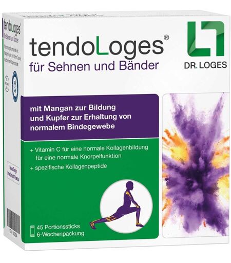 Anwendungsgebiet von Tendologes Für Sehnen Und Bänder PortionssticksTendologes Für Sehnen Und Bänder Portionssticks - Der intelligente Nährstoffkomplex* für belastbare Sehnen und Bänder. Die Sehnen und Bänder unseres Körpers leisten jeden Tag bei nahezu jeder Bewegung Schwerstarbeit. Sie sorgen dafür, dass wir in Bewegung kommen und bleiben – oder verleihen uns Stabilität, wenn sie gefragt ist. Doch erst das perfekte, hochkomplexe Zusammenspiel von Sehnen, Knochen und Muskeln macht die scheinbar selbstverständlichen kleinen und großen sportlichen oder alltäglichen Bewegungen überhaupt möglich. Umso mehr fällt es ins Gewicht, wenn dieses Zusammenspiel durch Fehl- oder Überbelastungen gestört wird und es in der Folge zu Beschwerden (z. B. an der Achillessehne, am Kreuzband oder am Sprunggelenk) kommt – oftmals begleitet von eingeschränkter Bewegungsfreiheit und unfreiwilligen Trainingspausen bei Sportler*innen. Zu diesen typischen Belastungssituationen zählen unter anderem einseitige Tätigkeiten und Bewegungen, Falsche Sitzhaltung am Schreibtisch oder Ruckartige Krafteinwirkungen. *Mangan trägt zu einer normalen Bindegewebsbildung und Kupfer zur Erhaltung von gesundem Bindegewebe bei. Vitamin C für eine normale Kollagenbildung für eine gesunde Knorpelfunktion.Wirkstoffe / Inhaltsstoffe / ZutatenZutaten von Tendologes Für Sehnen Und Bänder Portionssticks: Kollagenpeptide (Rind), L-Ascorbinsäure (Vitamin C), Mangangluconat, Kupfergluconat Inhaltsstoffe Pro Tagesdosis (1 Portionsstick mit 5,1 g Pulver) % NRV* Kollagenpeptide 5 g ** Vitamin C 80 mg 100 Mangan 1 mg 50 Kupfer 0,5 mg 50 *Nutrient Reference Values (Referenzmenge nach EU‐Lebensmittelinformationsverordnung) **Keine Empfehlung vorhandenGegenanzeigenBei bekannter Überempfindlichkeit gegenüber einen der oben genannten Inhaltsstoffe sollte dieses Produkt nicht ang ...