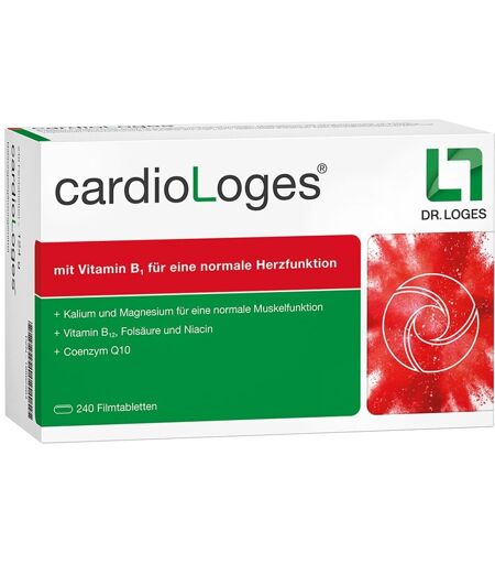 Anwendungsgebiet von Cardiologes FilmtablettenCardiologes Filmtabletten enthalten neben den für Muskulatur und Nervensystem wichtigen Elektrolyten Kalium und Magnesium auch Vitamin B1, welches zu einer gesunden Herzfunktion beiträgt. Zudem enthalten Cardiologes Filmtabletten weitere wichtige B-Vitamine und Coenzym Q10. Kalium – Elektrolyt mit vielen Funktionen Kalium ist ein lebensnotwendiges Mengenelement im menschlichen Körper. Es gehört zu den wichtigsten Elektrolyten des Körpers. Der essenzielle Mineralstoff trägt zu einer gesunden Funktion des Nervensystems und zusätzlich zu einer normalen Muskelfunktion bei. Zudem trägt Kalium zur Aufrechterhaltung eines normalen Blutdrucks bei. Magnesium – Für Muskeln und Nerven Auch das essenzielle Magnesium trägt zu einer normalen Funktion des Nervensystems und einer normalen Muskelfunktion bei. Magnesium ist das zentrale Element des grünen Blattfarbstoffs Chlorophyll und kommt dementsprechend vor allem in grünem Gemüse sowie Vollkorngetreide, aber auch Fleisch vor. Vitamin B1 trägt zu einer gesunden Herzfunktion bei. Das auch Thiamin genannte B-Vitamin trägt zu einer gesunden Herzfunktion und einer normalen Funktion des Nervensystems bei. Das Vitamin ist sehr hitzeempfindlich und wird beim Kochen und Backen der Lebensmittel häufig zerstört. Vitamin B12, Folsäure, Niacin und Q10 Vitamin B12 trägt zu einer gesunden Funktion des Nervensystems sowie zu einer normalen Bildung roter Blutkörperchen bei. In Cardiologes Filmtabletten ist Vitamin B12 in der hochwertigen Form als Methylcobalamin enthalten. Folsäure trägt zu einer normalen Blutbildung bei. Die Folsäure in Cardiologes Filmtabletten ist in der ebenfalls hochwertigen Form als Calcium-L-Methylfolat enthalten. Niacin unterstützt eine gesunde Funktion des Nervensystems. Coenzym Q10 kann zwar vom Körper gebildet werden, die Fähigkeit dazu nimmt jedoch im Laufe des Lebens ab ...