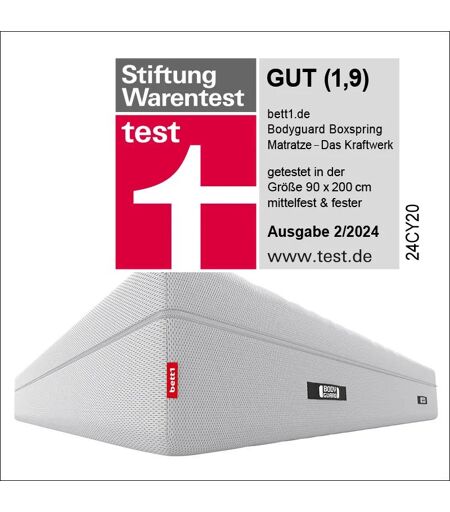 Extra hoch, wendbar und langlebig. Die BODYGUARD® Boxspring Matratze - Das Kraftwerk - ist ca. 28 cm hoch und eignet sich ideal, wenn Sie etwas höher liegen möchten oder wenn Sie eine höhere Matratze für Ihr Boxspringbett suchen. Der formstabile QXSchaum® sorgt dafür, dass Sie lange etwas von Ihrer Matratze haben, und lässt Sie in jeder Lage ergonomisch und angenehm schlafen. Möchten Sie weicher liegen? Einfach wenden und zwischen mittelfest und fester wählen. ...