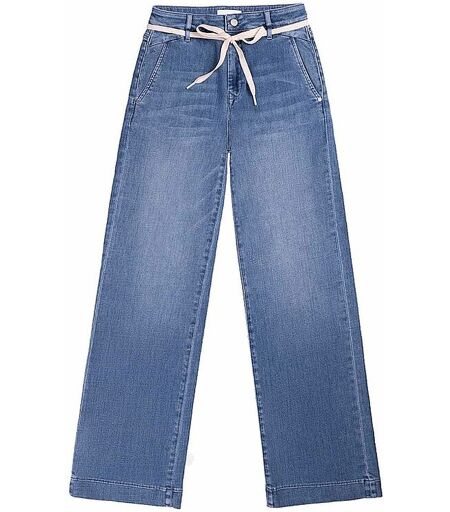 Damen Jeans aus Bio-Baumwoll-Mix Hohe Leibhöhe Zwei Eingrifftaschen Ausgestelltes Bein Farbbezeichnung: Medium Blue Material: 92% Baumwolle (bio, organic cotton), 6% Elastomultiester, 2% Elasthan (Spandex®) Die Marke DAWN ist Mitglied der Fair Wear Foundation. ...
