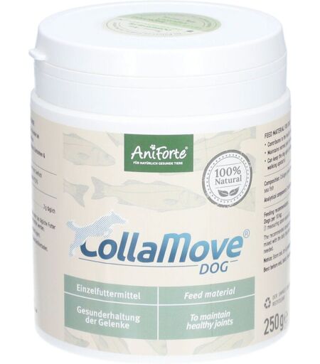 AniForte CollaMove dog kann durch eine optimale Versorgung mit Kollagen für Hunde die normale Gelenkfunktion und Agilität auf natürliche Weise unterstützen. Collagen für Hunde – 100 % Fisch-Collagen für die Gelenke Kollagen Peptide unterstützen die Gelenkfunktion Für mehr Agilität des Hundes, z.B. beim Aufstehen und Treppenlaufen Kollagen für Hunde – optimale Unterstützung der Gelenke Kollagen ist in der Haut sowie in Gelenken, Sehnen, Bändern und Knorpeln enthalten. Mit zunehmendem Alter bilden Hunde weniger Kollagen, dadurch können sie anfälliger für Gelenk- und Knochenbeschwerden werden. Mithilfe der Kollagen-Peptide, die durch unser Kollagen Pulver Hunden zugefüttert werden, können die Gelenke zu einer verstärkten Kollagenbildung angeregt und somit der Bewegungsapparat positiv beeinflusst werden. Außerdem können die Kollagensynthese sowie die Gefäßdurchblutung erhalten werden. Eine Studie hat gezeigt, dass Kollagen-Peptide zur Gesunderhaltung der Gelenke beitragen können. Zu den bekanntesten degenerativen Gelenkerkrankungen zählen Rheuma, Arthrose und Osteoarthritis. Wir empfehlen daher eine optimale Versorgung mit Kollagen Peptiden, um die natürliche Beweglichkeit Deines Lieblings zu unterstützen. Kollagen Pulver Hund – Gelenkpulver reiner Marinequalität Das in unserem Produkt enthaltene hochwertige Kollagen für Hunde stammt vom norwegischen Seefisch und wird ausschließlich aus nachhaltigem Wildfang gewonnen. Lediglich die Haut des Seefisches wird verarbeitet – daher sind keine weiteren Zusätze enthalten. Diese Kollagen-Peptide sind weniger vernetzt als jene aus Weidentieren, daher muss der Körper weniger Umbauarbeiten leisten, um sie aufzunehmen und zu verarbeiten. Aus diesen Gründen haben wir uns dazu entschieden, reines Fisch-Kollagen für unser Produkt zu verwenden. So entsteht ein reines Naturprodukt aus dem Nordatlantik mit wichtigem Kollagen für Hunde. Bereits seit Jahren vertrauen tausende, glückliche Kunden AniForte CollaMove dog – unserem Kollagen Pulver. Hunden kann es problemlos unter das tägliche Futter gemischt werden, das getreidefreie Produkt löst sich einfach auf. Besonders geschätzt werden auch der weitestgehend neutrale Geschmack und die damit einhergehende hohe Akzeptanz. Fütterungsempfehlung: Hunde je 10 kg: 2 g täglich (1 Dosierlöffel entspricht 1 g) Die empfohlene Menge kann einfach unter das tägliche Futter gemischt und je nach Bedarf erhöht werden. Hinweis: Kühl, trocken & lichtgeschützt lagern. Lieferung inklusive praktischem Dosierlöffel. Zusammensetzung: Kollagenpulver vom Seefisch aus kontrolliertem Wildfang Analytische Bestandteile: Rohprotein 97,0 %, Rohfaser 0,0 %, Rohasche 1,0 %, Rohfett 0,1 % ...