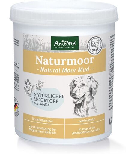 AniForte® Heilmoor Unterstützt die Magen-Darm-Aktivität Optimiert die Kotbeschaffenheit Regt den Appetit an Naturmoor aus deutschen Mooren Naturmoor für Hunde und Katzen für festeren Kot und eine gute Verdauung Das AniForte® Heilmoor für Hunde und Katzen ist ein reines Naturprodukt aus deutschen Mooren. Der hohe Gehalt an Huminsäuren kann die Verdauung sowie das Immunsystem Deines Hundes oder Deiner Katze unterstützen. Es wird zum täglichen Futter beigemischt. Unterstützung der Magen-Darm-Aktivität Regt den Appetit an und optimiert die Kotbeschaffenheit und -konsistenz Das Naturmoor für Hunde erfreut sich einer hohen Akzeptanz Reines Naturprodukt aus deutschen Mooren Heilmoor für Hunde und Katzen – direkt aus der Natur Das Heilmoor für Hunde und Katzen ist eines der ältesten Endprodukte der Natur und ein traditionelles Hausmittel. Es wird seit Generationen zur inneren und äußeren Anwendung bei Menschen und Tieren verwendet. Durch einen natürlichen biochemischen Prozess entsteht in Tausenden von Jahren eine organische Masse, die eine einzigartige Kombination an wertvollen Inhaltsstoffen beinhaltet. Insbesondere den natürlichen Humin- und Fulvosäuren, die im Moor in hoher Konzentration vorhanden sind, werden verdauungsfördernde und immunstärkende Eigenschaften zugesprochen. Diese unterstützen die Magen-Darm-Aktivität, indem sie schädliche Stoffe im Darm binden und herausspülen. Zusätzlich bilden Huminsäuren einen Schutz der Darmschleimhaut und haben appetitanregende Eigenschaften. Huminsäuren können bei Tieren auch zur Unterstützung des Verdauungstraktes verwendet werden. Naturmoor für Hunde und Katzen wirkt effektiv und unterstützt die Magen-Darm-Funktion Deines Tieres! Das AniForte® Heilmoor für Hunde und Katzen Unser Heilmoor für Hunde und Katzen ist ein naturbelassenes Produkt aus dem ältesten Moorheilbad Bayerns. Nach den höchsten Qualitätsansprüchen aufbereitet, kann es zum Wohlbefinden Deines Vierbeiners beitragen. Aufgrund seiner erdigen Konsistenz und seines natürlichen Aromas erfreut es sich einer sehr hohen Akzeptanz. Langjährige Kunden berichten ebenfalls über eine sehr gute Verträglichkeit, insbesondere bei sensiblen Hunden. Fütterungsempfehlung Hunde bis 10 kg: 2 Teelöffel täglich Hunde bis 20 kg: 3 Teelöffel täglich Hunde bis 30 kg: 4 Teelöffel täglich Hunde ab 35 kg: 5 Teelöffel täglich Katze: 1/2 Teelöffel täglich Das Heilmoor für Hunde einfach unter das tägliche Futter gemischt werden. Bitte saubere Teelöffel benutzen und vor Gebrauch gut umrühren. Vor dem Verschließen angesammeltes Kondenswasser mittels Tuches entfernen und regelmäßig überprüfen. Zusammensetzung Reines Naturmoor (Huminsäure-Gehalt 35 %) Analytische Bestandteile: Rohprotein 1,5 %, Rohfaser 1,0 %, Rohasche 0,6 %, Rohfett 0,1 %, Feuchtigkeit 89 % ...
