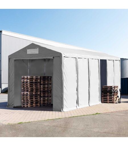 TOOLPORT 6x12 m Lagerzelt, PVC-Plane, grau, mit Bodenrahmen, mit Statik (Erduntergrund) - (93806)