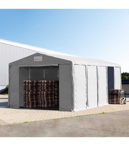 TOOLPORT 8x10 m Lagerzelt, PVC-Plane, grau, mit Bodenrahmen, mit Statik (Betonuntergrund) - (94049)