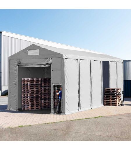 TOOLPORT 6x12 m Lagerzelt, PVC-Plane, grau, mit Bodenrahmen, mit Statik (Betonuntergrund) - (94041)