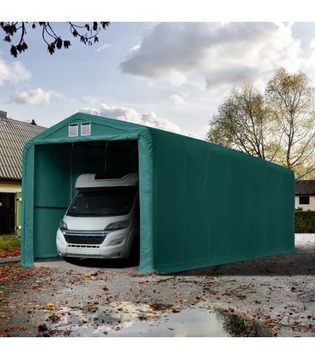 TOOLPORT 4x16m Zeltgarage, PVC-Plane, dunkelgrün, mit Statik (Betonuntergrund) - (99526)