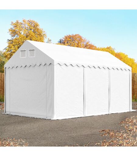 TOOLPORT 3x6 m Lagerzelt, PVC-Plane, weiß, mit Bodenrahmen, mit Statik (Betonuntergrund) - (57661)