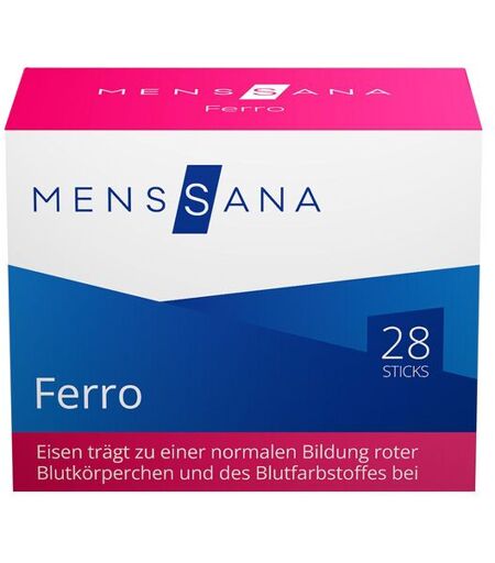 Nahrungsergänzungsmittel sind kein Ersatz für eine ausgewogene und abwechslungsreiche Ernährung und eine gesunde Lebensweise. Ferro MensSana dient der bedarfsgerechten und gezielten Versorgung des Körpers mit dem essenziellen Spurenelement Eisen. Die Rezeptur enthält neben organischem, zweiwertigem Eisenfumarat ebenso natürliches Vitamin C aus einem Acerola-Extrakt sowie Vitamin B12. Die Mikroverkapselung aus pflanzlichen Fettsäuren sorgt dafür, dass das Eisenpulver im Mund keinen metallischen Geschmack hinterlässt und besser bekömmlich ist – ganz ohne Bauchschmerzen. Durch die Zugabe von Vitamin C wird die Eisenaufnahme im Darm zusätzlich verbessert. Durch das zusätzlich enthaltene Vitamin B12 wird die Bildung von roten Blutkörperchen unterstützt. Das Zusammenspiel der drei Wirkstoffe bildet somit eine sinnvolle Kombination für die Eisenversorgung. Der praktische Direkt-Stick mit Holunderbeergeschmack löst sich einfach und ohne Zugabe von Wasser in kurzer Zeit auf der Zunge auf. Ferro MensSana ist für die einfache und bequeme Eisenversorgung unterwegs geeignet. Sämtliche Inhaltsstoffe sind vegan zertifiziert und sorgen dafür, dass Ferro MensSana auch das V-Label tragen darf. Das V-Label ist ein europaweit einzigartiges Qualitätssiegel mit einheitlichen Kriterien und regelmäßigen Kontrollen. ZutatenZucker, Acerola-Extrakt, Rote-Bete-Saftpulver, Maltodextrin, Eisenfumarat, Aroma, pflanzliches Fett (Ursprung Rapsöl), CyanocobalaminInhaltsstoffe Tagesdosis1 Stick (2 g)NRV% Eisen14 mg100Vitamin B122,5 µg100Vitamin C40 mg50NRV = Nährstoffbezugswerte nach VO (EG) Nr. 1169/2011Verzehrempfehlung Erwachsene und Jugendliche verzehren täglich 1 Stick vor dem Essen. Das Pulver löst sich bereits auf der Zunge und kann ohne Flüssigkeit geschluckt werden.HinweisAußerhalb der Reichweite von kleinen Kindern lagern.Die angegebene empfohlene Verzehrmenge darf nicht überschritten werden.Produktänderungen sind möglich und werden zeitnah eingearbeitet.Die Angaben geben den Status zum Zeitpunkt der Veröffentlichung wieder und können sich von gedrucktem Material unterscheiden. Alle Angaben können ohne Bekanntgabe geändert werden. Irrtümer und Druckfehler vorbehalten.Nettofüllmenge28 Sticks = 56 gHerstellerMensSana AGAm Bahnhof 174670 Forchtenberg ...