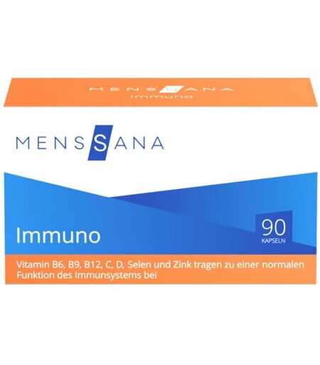 Nahrungsergänzungsmittel sind kein Ersatz für eine ausgewogene und abwechslungsreiche Ernährung und eine gesunde Lebensweise. Immuno akut MensSana dient der bedarfsgerechten Empfehlung mit Mikronährstoffen und trägt mit den Vitaminen B6, Folsäure, B12, C, D, Selen und Zink zu einer normalen Funktion des Immunsystems bei und unterstützen somit die körperliche Abwehr. Die Mikronährstoffe Zink, Vitamin C und E tragen als Antioxidantien dazu bei, die Zellen vor oxidativem Stress durch freie Radikale zu schützen. Die Rezeptur enthält Pflanzenextrakte aus der Studentenblume (Tagetes erecta), Tomate und Zitrusfrucht, die wertvolle sekundäre Pflanzenstoffe liefern. Durch die Abfüllung in eine pflanzliche Zellulosekapsel ist Immuno akut MensSana auch für eine vegane Ernährung geeignet. Zutaten L-Ascorbinsäure, Hydroxypropylmethylcellulose (Kapselhülle), Citrusextrakt, Zinkgluconat, Tagetesextrakt, Tomatenextrakt, D-alpha-Tocopherylacetat, Chromhefe, Füllstoff mikrokristalline Cellulose, Selenomethionin, Trennmittel Magnesiumsalze der Speisefettsäuren (pflanzlich), Cyanocobalamin, Pyridoxinhydrochlorid, Trennmittel Siliciumdioxid, Beta-Carotin, Cholecalciferol, Pteroylmonoglutaminsäure Nährwerte: Inhaltsstoffe TD NRV % / TD Internationale Einheiten I.E. Beta-Carotin 1 mg entspricht Vitamin A 167 µg RE 21 Vitamin B6 4 mg 286 Folsäure 400 µg 200 Vitamin B12 6 µg 240 Vitamin C 100 mg 125 Vitamin D3 5 µg 100 200 I.E. Vitamin E 12 mg ?-TE 100 18 I.E. Chrom 50,1 µg 125 Selen 50 µg 91 Zink 10 mg 100 Tagetesextrakt 50 mg enthält Lutein 5 mg enthält Zeaxanthin 0,3 mg Tomatenextrakt 30 mg enthält Lycopin 1,5 mg Citrus-Extrakt 83,5 mg enthält Bioflavonoide 50,1 mg Heidelbeerfruchtpulver 5 mg TD = Tagesdosis = 1 Kapsel Verzehrempfehlung Erwachsene und Jugendliche verzehren 1 Kapsel täglich vor dem Essen mit reichlich Wasser. Die Kapselhülle aus pflanzlicher Zellulose enthält keine wertgebenden Inhaltsstoffe und kann nach Bedarf geöffnet werden. Es besteht die Möglichkeit, das enthaltene Pulver dem Essen beizufügen. Das Pulver löst sich nicht in Getränken. Hinweis:Die angegebene empfohlene Tagesmenge darf nicht überschritten werden.Aufbewahrung: Kühl (6-25 °C) und lichtgeschützt lagern. Außerhalb der Reichweite von kleinen Kindern aufbewahren.Nettofüllmenge 90 Kapseln = 49,5 gHerstellerMensSana AGAm Bahnhof 174670 Forchtenberg ...