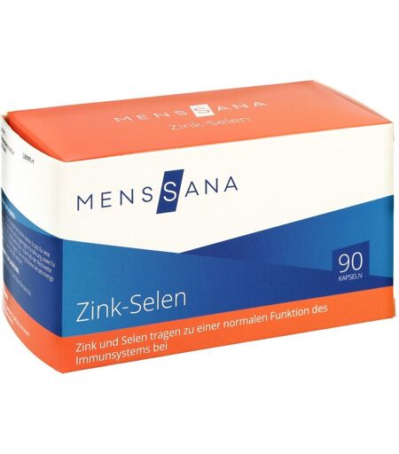Anwendungsgebiet von Zink Selen Menssana KapselnZink Selen Menssana Kapseln sind ein Nahrungsergänzungsmittel. Zink-Selen trägt zu einer normalen Funktion des Immunsystems bei und unterstützt die bedarfsgerechte Versorgung des Körpers mit lebenswichtigen Spurenelementen.Wirkungsweise von Zink Selen Menssana KapselnZink Selen Menssana Kapseln tragen dazu bei, die Zellen vor oxidativem Stress zu schützen und unterstützen eine normale Funktion des Immunsystems, der Psyche, des Stoffwechsels, der Knochen und der Zellteilung. Weiterhin unterstützen sie die Sehkraft und helfen bei der Erhaltung normaler Haut, Haare und Nägel.Wirkstoffe / Inhaltsstoffe / ZutatenInhaltsstoffe von Zink Selen Menssana Kapseln Zutaten: Füllstoff mikrokristalline Zellulose, Zinkgluconat, Gelatine, Selen-angereicherte Hefe, Trennmittel Magnesiumsalze der Speisefettsäuren (pflanzlich), Farbstoff Titandioxid (Kapselhülle) Nährstoffe pro Kapsel: 10 mg Zink entspricht 100% der empfohlenen Tagesdosis eines Erwachsenen. 100 µg Selen entspricht 182% der empfohlenen Tagesdosis eines Erwachsenen.GegenanzeigenBei bekannter Überempfindlichkeit gegenüber einem der oben genannten Inhaltsstoffe sollte das Produkt nicht verwendet werden.DosierungAnwendungsempfehlung von Zink Selen Menssana Kapseln: Täglich 1 Kapsel mit ausreichend Flüssigkeit schlucken, vorzugsweise zu einer Hauptmahlzeit.EinnahmeEine Kapsel Täglich mit viel Wasser einnehmen.HinweiseNahrungsergänzungsmittel sind kein Ersatz für eine ausgewogene und abwechslungsreiche Ernährung. Zink Selen Menssana Kapseln sollten außerhalb der Reichweite von Kindern aufbewahrt werden. Die täglich empfohlene Verzehrmenge sollte nicht überschritten werden. Zink Selen Menssana Kapseln können in Ihrer Versandapotheke www.juvalis.de erworben werden. ...