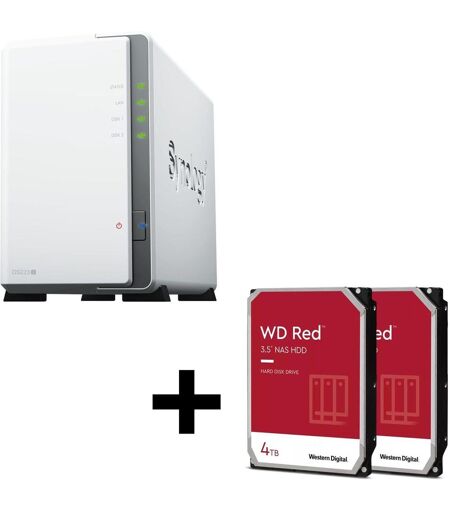 Synology DiskStation DS223J 2 Einschübe NAS-Server Leergehäuse + 8TB (2x4TB) WD Red 40EFPX SATA 3.5