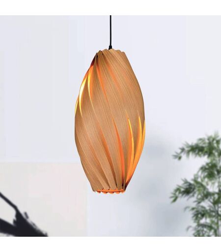 Die nachhaltig gefertigte Hängeleuchte Ardere in länglicher Form wirkt als Lichtspender und dekoratives Einrichtungsaccessoire zugleich. Der Schirm der Pendelleuchte besteht aus Holzfurnier: Dabei werden Lamellen aus Kirschbaumholz zu einer länglichen Form zusammengefügt. Durch die Beleuchtung aus dem Inneren kommt die Holzmaserung besonders schön zur Geltung. Dabei wird das Licht völlig blendfrei abgegeben. Der ideale Lichtspender für die entspannende Allgemeinbeleuchtung in Wohn- und Schlafräumen oder die behagliche Ausleuchtung von Wohn- und Esszimmertischen. - jede Leuchte ein handgearbeitetes Unikat - mit Lampenfassung aus Aluminium in Schwarz - mit Textilkabel in Schwarz bestückt - hergestellt in Deutschland von Gofurnit - nachhaltige Verpackung ...