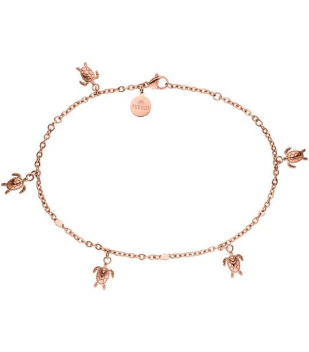 Die filigrane Makena Fußkette wird durch fünf Schildkröten-Anhänger verziert. Material Gold: Edelstahl 18K vergoldet Silber: Edelstahl Roségold: Edelstahl 18K rosévergoldet Größe: Verstellbar, 21/23/25 cm Gewicht: 5,18 g ...