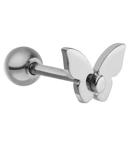 Piercing im Schmetterlingdesign. Das Butterfly Piercing wird durch eine Kugel verschlossen. Material Gold: Edelstahl 18K vergoldet Silber: Edelstahl Größe Schmetterling: 4 x 5,5 mm Länge mit Verschluss: 11 mm Materialstärke Schmetterling: 0,7 mm Materialstärke Stab: 0,9 mm Größe Kugel: 3 mm Gewicht: 0,2 g ...