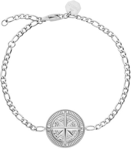 Für Freigeister und Abenteurer: Armband mit Kompass-Anhänger in der Mitte und geprägtem Windrosen Muster. Material Gold: Edelstahl 18K vergoldet Silber: Edelstahl Länge: Verstellbar, 18/20/22 cm Durchmesser Anhänger: 20 mm Gewicht: 6,78 g ...