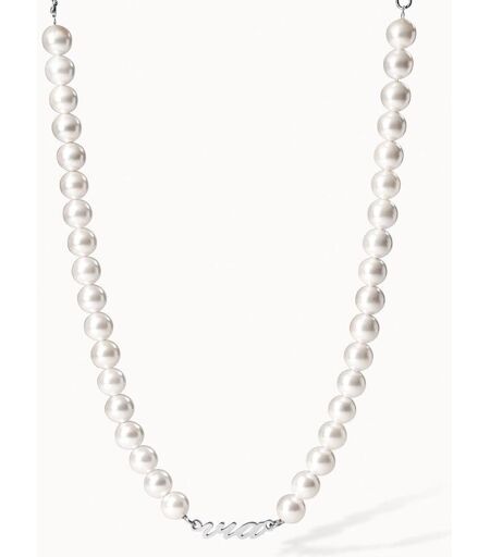 Perlenkette mit geschwungenem via Schriftzug. Aus der Via Kollektion von PURELEI x Millane. Gold: Edelstahl 18K vergoldet Silber: Edelstahl Roségold: Edelstahl 18K rosévergoldet Perlen: Muschelperlen Länge: Verstellbar, 30 - 40 cm Anhänger: Länge 21,9 mm Gewicht: 24,68 g Bitte beachte: Da es sich bei den Perlen um Naturprodukte handelt, können Form und Farbe leicht variieren. Seashell Perlen sind nicht wasserfest und sollten daher vor übermäßiger Feuchtigkeit geschützt werden, um ihre Schönheit zu bewahren. ...