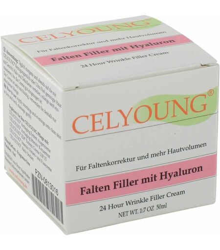 Anwendungsgebiet von Celyoung Falten Filler mit Hyaluron CremeDer Celyoung Falten Filler mit Hyaluron ist eine reichhaltige, feuchtigkeitsspendende Creme mit einer hohen Verträglichkeit, die Ihrer Haut durch Hyaluron zu strahlender Frische verhelfen soll.
