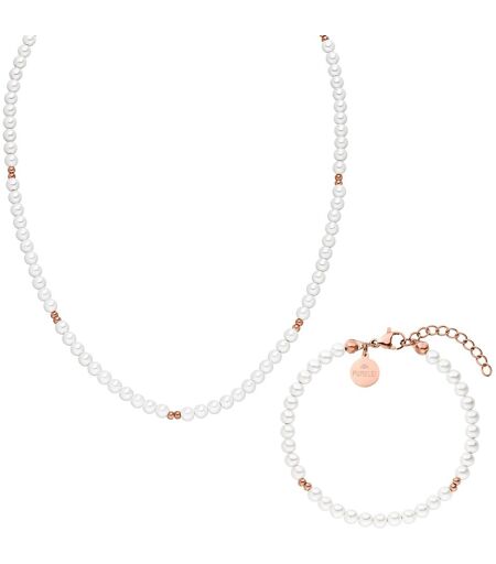 Setze Akzente mit dieser eleganten Halskette und dem passenden Armband aus Muschelperlen. Dieses zeitlose Set kannst Du immer tragen. Material: Gold: Edelstahl 18K vergoldet Silber: Edelstahl Roségold: Edelstahl 18K rosévergoldet Finesse Kette: Länge: Verstellbar, 40/45 cm Gewicht: 11,71 g Finesse Armband: Länge: Verstellbar, 16-19 cm Gewicht: 4 g Bitte beachte: Da es sich bei den Perlen um Naturprodukte handelt, können Form und Farbe leicht variieren. Seashell Perlen sind nicht wasserfest und sollten daher vor übermäßiger Feuchtigkeit geschützt werden, um ihre Schönheit zu bewahren. ...