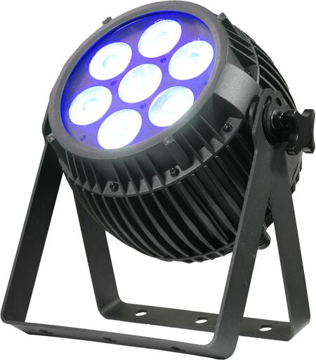 ExpoLite AkkuLED 140 ist ein kabelloser LED-Scheinwerfer mit 7 × 20 W RGBALC-LEDs, der dank integriertem CRMX-Empfänger, IP65-Aluminium-Druckgussgehäuse und lüfterloser Kühlung maximale Flexibilität für Outdoor-Events, mobile Anwendungen und professionelle Bühnen bietet. Sein 25-Grad-Abstrahlwinkel sorgt für homogene Ausleuchtung, während die kraftvolle Lithiumbatterie mit 29,4 V / 15 Ah bis zu 10 Stunden Laufzeit bei Zweifarbbetrieb und 7,5 Stunden bei voller Farbmischung liefert, wobei die Ladezeit nur 6 Stunden beträgt. Mit variabler PWM-Rate von 1.200 Hz bis 20.000 Hz arbeitet der AkkuLED 140 absolut flimmerfrei für Kamera-Produktionen. Die Steuerung erfolgt wahlweise per DMX, CRMX oder RDM über eine 3-polige XLR-Buchse, drei Kanalmodi (6 / 8 / 12) stehen bereit. Trotz seiner Leistung bleibt der Scheinwerfer mit 6,98 kg, kompakten 266 × 289 × 218 mm extrem handlich und energieeffizient – die ideale Lösung für professionelle Anwender, die wetterfeste, akkubetriebene Beleuchtung mit präziser Farbwiedergabe und einfacher Handhabung verlangen.Technische Daten: Abstrahlwinkel: 25°, Batterie Kapazität: 29,4V / 15A, Batterietyp: Lithium, Gehäuse: Aluminium Druckguss, Gewicht: 6,98 kg, Kanalmodi: 6 / 8 / 12, Kühlung: Lüfterlos, Ladezeit: 6h, Laufzeit 2 Farben: 10h, Laufzeit Full Color: 7,5h, LED Typ: 7 x 20W RGBALC, Leistungsaufnahme: max. 114W, Maße: 266 x 289 x 218 mm, PWM Rate: 1.200Hz - 20.000Hz, Schutzklasse: IP65, Steueranschluss: 3-pol XLR, Steuersignal: DMX / CRMX / RDM ...