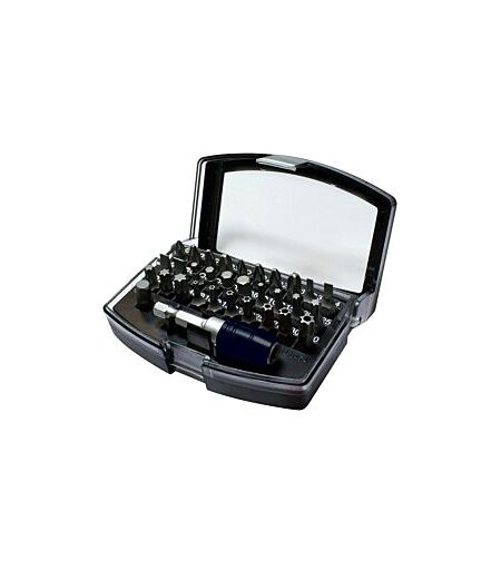 FORTIS Bit-Sortiment 4317784791243Bit-SortimentgemischtS2-StahlFür Maschinen- und HandbetätigungLieferung: In praktischer Kunststoffbox mit Gürtelclip und Sichtfenster.Inhalt:1 Bit-Halter mit Schnellwechselfutter4 Bits für 6-kant-Schrauben 3; 4; 5; 6 mm4 Bits für Schlitz-Schrauben 3; 4; 5; 6 mm4 Bits für Kreuzschlitz-Schrauben PH 1; 2 x PH 2; PH 34 Bits für Kreuzschlitz-Schrauben PZ 1; 2 x PZ 2; PZ 37 Bits für TORX®-Schrauben T 10; T 15; T 20; T 25; T 27; T 30; T 407 Bits für TORX® BO-Schraubenmit Bohrung T 10; T 15; T 20; T 25; T 27; T 30; T 401 Steckschlüssel-Adapter 1/4" ...