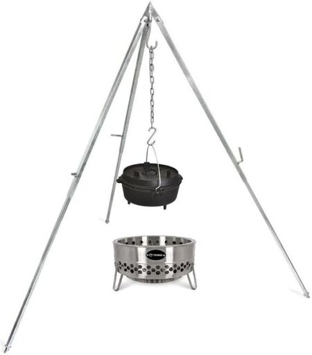 Petromax Feuerschale Tyropit Set inkl. Dreibein, Rost & Feuertopf ft9 Produktnummer: 0691405025 Das Petromax Aktionsset 3T beinhaltet ein Dreibein inkl. Hängerost, Feuertopf ft9 und der Feuerstelle Tyropit. Dieses Set ist der perfekte Begleiter für Ihren Urlaub in der Natur. Die Feuerschale Tyropit bringt das authentische Lagerfeuer für echte Wildnis-Atmosphäre nach Hause in deinen Garten und sorgt für raucharmes Vergnügen. Perfekt für gesellige Abende oder romantische Nächte, eignet sich auch hervorragend als Basis zum Kochen und Grillen. Erlebe mit der Feuerschale Tyropit die Magie eines echten Lagerfeuers in deinem Garten. Das authentische Flammenbild-Design sorgt für eine Wildnis-Atmosphäre, die jeden Abend besonders macht. Dank cleverer Konstruktion und effektiver Sekundärverbrennung genießt du eine raucharme und gleichmäßige Verbrennung mit minimalen Ascherückständen.Der integrierte Hitzeschild reduziert die Hitze nach unten und schützt deinen Boden vor Beschädigungen. Hochwertiger Edelstahl im minimalistischen Design kombiniert Natürlichkeit mit stilvollem Look. Die Feuerschale ist robust und langlebig, entwickelt mit der Zeit eine einzigartige Patina und hat dank drei stabilen Standfüßen einen sicheren Halt auf jedem Untergrund. Die Tyropit Feuerschale ist vielseitig einsetzbar - perfekt als Basis zum Kochen und Grillen, erweiterbar mit einer Grillplatte und kompatibel mit einer Vielzahl anderer Petromax Produkte (z.B. Guss, Perkolatoren, Lagerfeierspießen, Waffeleisen uvm.). Genieße gesellige Abende beim Essen, melancholische oder romantische Momente am Lagerfeuer - allein oder in der Gruppe. Bringe mit der Tyropit Edelstahl-Feuerschale deine Liebsten für unvergessliche Lagerfeuerabende zusammen oder genieße die entspannte Atmosphäre ganz für dich allein. Erlebe die Wärme und Vielfalt des Feuers und schaffe unvergessliche Erinnerungen. Der Hänge-Rost für das Petromax Dreibein erweitert ihre Draußen-Küche um ursprüngliche Grillerlebnisse am Lagerfeuer. Mittels der drei stabilen Ketten wird der verchromte Stahlrost mit einem Handgriff an ihren Dreibeinhaken gehängt und ist direkt einsatzbereit. Den Abstand zu ihrer Kochstelle regeln Sie dabei bequem über die Kettenlänge des Dreibeins. Durch die natürliche Pendelbewegung wird ihre stärkende Mahlzeit immer nur in Intervallen den lodernden Flammen ausgesetzt und gart damit schonend. Steaks, Filets und sogar Gemüse nehmen das intensive Aroma des Holzfeuers an und bekommen durch die Roststruktur das typische Grillmuster, bleiben dabei aber besonders saftig. Der erhöht umlaufende Rand des Hänge-Rostes schützt zeitgleich vor dem Herabfallen der Speisen. So können Sie ihrer Grillfläche noch einen zusätzlichen Schwung geben und in den Genuss des Schwenkgrillens kommen. Mit einer Fläche von 50 cm im Durchmesser haben Sie auch ausreichend Platz für die feurigsten Fleischgerichte und füllen so einige hungrige Mägen. Kommen Sie auf den Geschmack des ursprünglichen Grillens mit Feuer mit dem Hänge-Rost... ...