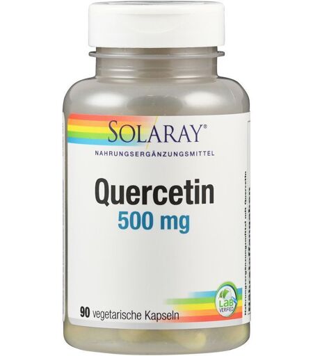 Nahrungsergänzungsmittel sind kein Ersatz für eine ausgewogene, abwechslungsreiche Ernährung und eine gesunde Lebensweise.SOLARAY® Quercetin 500 mg Nahrungsergänzungsmittel mit QuercetinQuercetin gilt als sehr starkes Bioflavonoid. Das Quercetin in diesem Solaray-Produkt ist aus den Schalen von Weintrauben gewonnen und stellt somit auch eine Empfehlung für Zitrus-Allergiker dar.Zutaten:Quercetin, Kapselhülle Gelatine, Füllstoff Cellulose, Trennmittel Speisefettsäuren, Trennmittel Siliciumdioxid .Nährwerte:Durchschnittliche Nährwerte:pro Kapsel Quercetin500 mg Verzehrempfehlung:Nehmen Sie 1x täglich eine Kapsel mit ausreichend Flüssigkeit ein. Hinweise:Die angegebene Verzehrmenge darf nicht überschritten werden.Aufbewahrung:Kühl und trocken lagern und außerhalb der Reichweite von Kindern aufbwahrenNettofüllmenge:90 Kapseln Hersteller:Supplementa Corporation B.V.Papierbaan 50a9672 BH WinschotenNiederlande ...