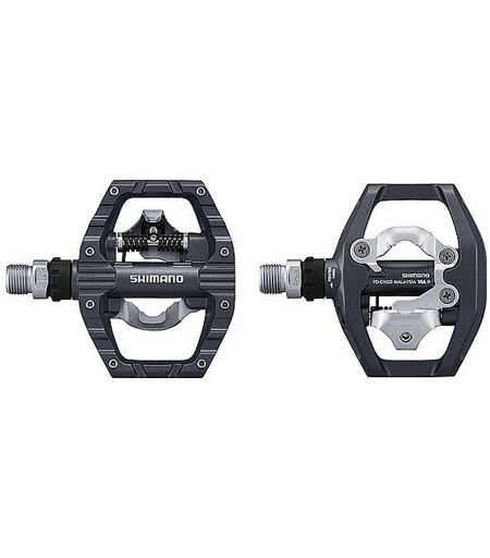 Effiziente SPD-Bindung mit leichtem Einstieg auf der einen und Plattform auf der anderen Pedalseite Verbesserter Halt auf der flachen Pedalseite für mehr Kontrolle Achseinheit mit gedichtetem Kompaktlager minimiert den Wartungsbedarf Einstellbare Ein- und Ausstiegshärte Ausführung: SPD Material: Alu Pedal-Achse: Chromoly Stahl Cleats: SM-SH56 Gewicht: 558 g Farbe: Dunkelgrau ...