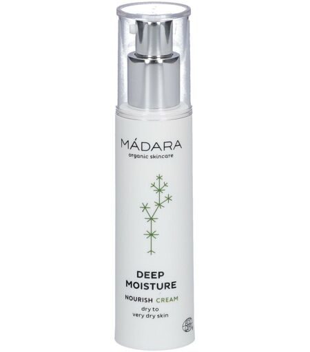 MÁDARA Deep Moisture-Creme Eine reichhaltige, besonders gehaltvolle Feuchtigkeitspflege, ideal für trockene Haut sowie trockenes und/oder kaltes Klima. Die Haut bleibt 24 h bestens versorgt. Unterstützt den Erhalt optimaler Feuchtigkeit in der Haut, sorgt sofort für ein angenehmens Gefühl. Anwendung: Morgens nach der Reinigung auf Gesicht und Hals auftragen. Inhaltsstoffe: Aloe Barbadensis (Aloe) Leaf Juice, Aqua, Simmondsia Chinensis (Jojoba) Seed Oil, Alcohol, Rosa Damascena (Rosa) Flower Water, Glycerin, Dicaprylyl Carbonate, Polyglyceryl-3 Methylglucose Distearate, Cetearyl Alcohol, Butyrospermum Parkii (Shea Butter) Fruit Butter, Diheptyl Succinate, Persea Gratissima (Avocado) Oil, Plantago Major (Plantain) Leaf Extract, Sodium PCA, Hippophae Rhamnoides (Sea-buckthorn) Fruit Extract, Rosa Canina (Rosehip) Fruit Extract, Aroma, Avena Sativa (Oat) Kernel Extract, Lecithin, Stearic Acid, Palmitic acid, Xanthan Gum, Algae, Mica ( CI 77019 ), Titanium Dioxide (CI 77891), Sodium Hyaluronate, Potassium Sorbate, Sodium phytate, Tocopherol, Ascorbyl Palmitate (Vitamin C), Capryloyl Glycerin/Sebacic Acid Copolymer, Lactic Acid, Hydrolyzed Hyaluronic Acid, Limonene, Linalool, Citral ...