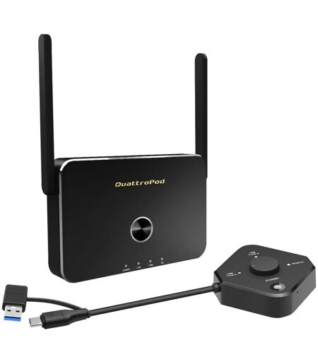 QuattroPod USB – Kabellose Bildschirmübertragung mit nur einem USB-KabelDer QuattroPod USB ist ein innovatives Präsentationssystem, das die kabellose Übertragung von Bildschirminhalten auf ein Display oder einen Projektor ermöglicht. Er ist ideal für Konferenzen, Meetings und Schulungen, da er sich flexibel an unterschiedliche Geräte und Plattformen anpasst. Hierbei bietet der QuattroPod sowohl die Übertragung mit als auch ohne Sender, sodass er vielseitig eingesetzt werden kann.Kabellose Bildschirmübertragung mit SenderMit dem QuattroPod USB können Sie ganz einfach Ihren Bildschirm per USB-Kabel übertragen. Der Empfänger wird über HDMI mit einem Bildschirm oder Projektor verbunden, während der Sender per USB-C oder USB-A an den PC oder das Notebook angeschlossen wird. Auch Tablets und Smartphones können per Aufladekabel verbunden werden. Durch einfaches Drücken des Auswahlschalters am Sender startet die Übertragung. Unterstützte Auflösungen gehen bis Full-HD, was gestochen scharfe ... ...