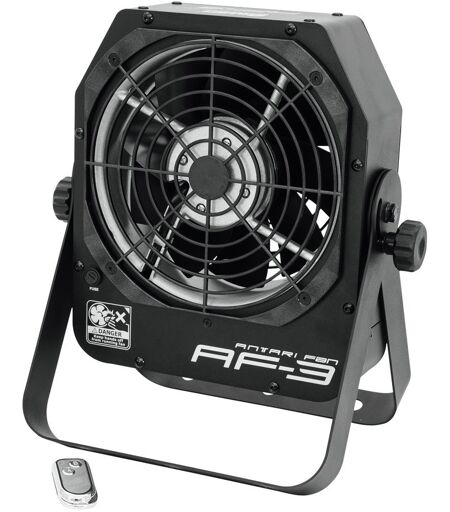 DMX-steuerbare Windmaschine, Austrittswinkel veränderbar + Fernbedienung Geeignet u. a. für den Einsatz mit Nebel-, Schnee- und Seifenblasenmaschinen, Manuelle Steuerung per Drehregler, Luftaustrittswinkel veränderbar, Niedriger Stromverbrauch, Ansteuerbar über Stand-alone, DMX, Funkfernsteuerung, Funkfernsteuerung: Reichweite von bis zu 50m, Mit Montagebügel, NEUTRIK Steckverbindung verbaut, Für Anwendungsgebiete wie zum Beispiel: Mobilen Einsatz, Bühne, Lieferumfang 1 x Gerät, 1 x Bedienungsanleitung, 1 x Netzkabel/Stromkabel, 1 x Fernbedienung, 1 x Konformitätserklärung, Stromversorgung: 230 V AC, 50 Hz, Gesamtanschlusswert: 116 W, Stromanschluss: Stromeinspeisung über PowerCON (blau), Einbauversion Stromanschlusskabel mit Schutzkontaktstecker (mitgeliefert), Stromausgang: 1 x PowerCON (grau), Einbauversion, Drehzahl: 750 U/min - 2250 U/min, Maximaler Luftdurchsatz: 900 m³/h, DMX-Kanäle: 1, DMX-Ausgang: 1 x 5-pol XLR (W) Einbauversion, Ansteuerung: Stand-alone, DMX, Funkfernsteuerung, Reichweite: Funkfernsteuerung: bis zu 50m, Gehäusefarbe: Schwarz, Aufnahmesystem: Montagebügel, Markenverwendung: NEUTRIK Steckverbindung verbaut, Maße: Breite: 33,3 cmHöhe: 37 cm, Gewicht: 5,95 kg, Fernbedienung, Batterie: 1 x 12 V LR27 Alkali-Mangan eingebaut ...