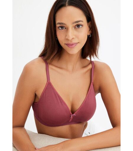 Durch seine nahtlos vorgeformten Cups und die Bio-Baumwolle sitzt der BH angenehm weich auf der Haut, ohne dabei zu drücken. Hoher Schnitt der Cupform sowie schmale Träger sorgen zusätzlich für ein schönes Dekolleté. Ein dezenter Hingucker findet sich in der Schleife am Mittelsteg.Der BH von bpc kommt ohne Bügel aus und eignet sich so ideal zum Tragen unter figurbetonenden Tops oder T-Shirts. Im 3er-Pack ist die Wäschemode in den Varianten 2x weiß und 1x hellblau, 2x schwarz und 1x aubergine sowie 1x schwarz, 1x weiß und 1x rot erhältlich. ...