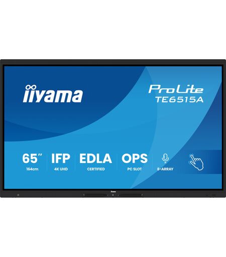 iiyama ProLite TE6515A-B1AG – Interaktives 4K-Display mit Stil, Präzision und smarter IntegrationEleganz trifft InteraktivitätDer iiyama ProLite TE6515A-B1AG setzt neue Maßstäbe für interaktive Displays im Bildungs- und Unternehmensbereich. Mit seiner 65-Zoll-(163,9 cm) großen 4K-UHD-Oberfläche, modernem Design und innovativen Technologien verwandelt dieses Display Klassenzimmer und Konferenzräume in kreative, vernetzte und effiziente Arbeitsumgebungen. Dabei ist es nicht nur funktional, sondern auch ein optisches Highlight, das jede Umgebung stilvoll aufwertet.Technische Daten auf einen Blick:Bildschirmdiagonale: 65 Zoll / 163,9 cmAuflösung: 3840 x 2160 (4K UHD)Betriebssystem: iiWare 21E mit Android 14 (Google EDLA-zertifiziert)Konnektivität: WiFi 6, Bluetooth 5.0, NFC, USB-C, OPS SlotSpezialfunktionen: PIR-Sensor, Stylus Pick-Up Sensor, SchnellradialmenüDesign, das Räume aufwertetDas moderne Erscheinungsbild des TE6515A-B1AG überzeugt durch klare Linien, hochwertige Materialien un... ...