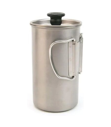 Die handliche Snow Peaks Titanium Kaffeepresse ist perfekt für den Kaffee unterwegs beim Picknick, beim Campingurlaub oder mehrwöchigen Hikes - denn sie wiegt fast nichts und ist trotzdem ultrarobust. Mit einem etwas gröberen Mahlgrad kannst du erfahrungsgemäß den besten Kaffee darin zubereiten. Einfach zuerst die gewünschte Menge Wasser kochen, kurz abkühlen lassen, dann den Kaffee einrühren und die Kaffeepresse einsetzen - aber noch nicht herunterdrücken. Nach ein paar Minuten drückst du den Pressstempel nach unten und kannst den fertigen Kaffee sofort aus der Presse in die Tasse gießen. Und darüber hinaus kannst du den 700 ml großen Titanbehälter der Snow Peak Titanium Kaffeepresse auch als Kochgeschirr nutzen. ...