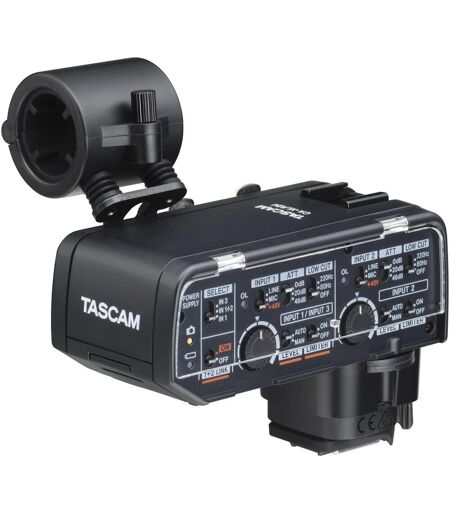 Tascam CA-XLR2d-AN - XLR-Mikrofon Adapter für Kameras mit analogem Eingang Geeignet für Nikon Kameras Zwei XLR/TRS-Eingangsbuchsen Leistungsstarker A/D-Wandler Integrierter Mikrofonvorverstärker Abnehmbare Mikrofonhalterung Zubehörschuh zur Befestigung von Mikrofonen Austauschbarer Kameraschuh Wahlweise automatische Pegelaussteuerung Übersteuerungsanzeige für jeden Eingang Der CA-XLR2d ist ein ...
