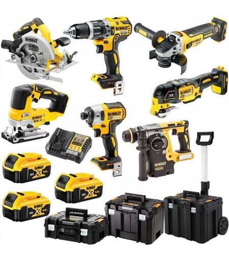 Contains 7 machines, 3 x 5 Ah batteries, and chargers, TSTAK. ...