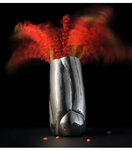 Die Tom Dixon Cloud Vase wurde für die britische Designmarke Tom Dixon entworfen und ist ein ausdrucksstarkes Gefäß, dessen skulpturale Form an die sanften Konturen einer Wolke erinnert. Die Tom Dixon Cloud Vase ist in zwei verschiedenen Höhen erhältlich und Teil der Cloud Kollektion, einer Familie von bauchigen und skulpturaken Wohnaccessoires, die von erfahrenen Handwerkern in Indien in Handarbeit angefertigt werden. Auf diesem Wege entstehen kunstvolle Artefakte, wobei jedes Gefäß einzigartige Qualitäten besitzt. Die gehämmerte Oberfläche aus poliertem Aluminium erzeugt spannende Lichtreflexe, die durch die organischen Ausformungen betont werden und der Vase ihre besondere Optik verleihen. In der wasserdichten Tom Dixon Cloud Vase lassen sich je nach Belieben Blumen arrangieren oder Lebensmittel dekorativ aufbewahren. Der Entwurf vereint modernes Design und traditionsreiche Handwerksk... ...