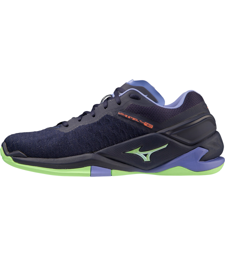 Mizuno Handballschuhe Wave Stealth Neo blue/green/lolite Der in Japan gemeinsam mit dem Handball-Weltmeister von 2018, Mikkel Hansen, entwickelte Wave Stealth Neo wurde für Spieler*innen entwickelt, die auf dem Platz hohe Stabilität und gute Dämpfung erwarten. Ausgestattet mit der neuen innovativen MIZUNO-ENERZY-CORE-Technologie erzeugt der Schuh eine hohe Energieübertragung für höhere Sprünge und mehr Beweglichkeit. Die Mizuno WaveTechnologie sorgt für dynamische Dämpfung und seitliche Stabilität zugleich Die Mizuno Enerzy Core Technologie sorgt für unerreichbare Energieübertragung und höhere Sprünge Die komplett flache Sohle in Kombination mit der hochgezogenen Außensohle sorgt für hohe Stabilität Das gestrickte Obermaterial bietet erstklassige Passform und eine hohe Atmungsaktivität Die feste Fersenkappe sorgt für Stabilität im Fersenbereich ohne den Schuh dabei schwerer zu machen ...