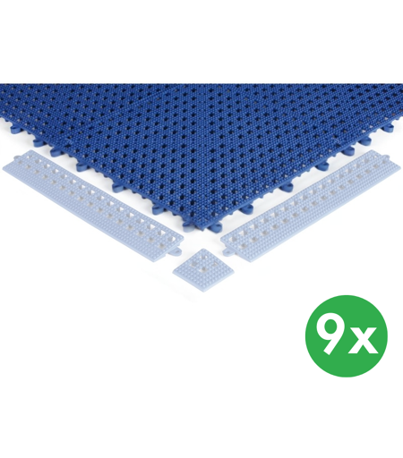 Material: PVC die strukturierte Oberfläche schützt vor Ausrutschen angenehm barfuß zu gehen, unterstützt keinen Bakterienwuchs die Löcher ermöglichen den Abfluss von Flüssigkeiten und das Durchfallen von Schmutz für Reinigungszwecke kann sie einfach gerollt werden kann einfach verbunden werden und so kann eine gewünschte Fläche gebildet werden gegen die meisten Öle und Chemikalien beständig Endkanten für eine höhere Sicherheit Eigenschaften: Farbe: blau, Material: PVC, Ausführung: Fliese 30 x 30 cm, Packung (Stk.): 9, Breite (cm): 30, Anti-Ermüdungswirkung: Ja, Öffnungen zur Schmutzabführung: Ja, Beständig gegen Öle: Ja, Schwer entflammbar: -, Antistatische Ausführung: -, Für Schwerlasten geeignet: -, Länge (cm): 30, Maße B x L (mm): 30 x 30 ...