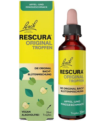 Anwendungsgebiet von Bach RESCURA Original Tropfen Apfel- und MinzgeschmackBach RESCURA Original Tropfen Apfel- und Minzgeschmack sind ein Nahrungsergänzungsmittel mit den Bach®-Blütenessenzen Drüsentragendes