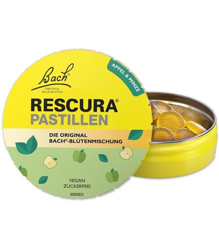 Anwendungsgebiet von Bachblüten Original Rescura Pastillen Apfel-MinzeBachblüten Original Rescura Pastillen Apfel-Minze sind wohltuende Lutschbonbons mit Süßungsmitteln – ideal für unterwegs oder in Momenten innerer Unruhe.Die BACH® RESCURA® Pastillen mit Apfel-Minze-Geschmack vereinen fünf Original Bach®-Blüten in einer zuckerfreien, alkoholfreien und veganen Rezeptur – ideal für stressige Situationen im Alltag, auf Reisen oder vor wichtigen Terminen.Die Pastillen sind handlich, leicht anzuwenden und kommen ganz ohne Nebenwirkungen aus. Die Original Bach®-Blütenmischung wird seit über 90 Jahren nach traditioneller Methode aus Edward Bachs Garten in England gewonnen – für ein natürliches Gefühl von innerer Balance.Mit der bewährten Original Bach®-BlütenmischungZuckerfrei, alkoholfrei und veganReisefreundliches Format und perfekt für unterwegsNatürlich, ohne bekannte NebenwirkungenFür Erwachsene und Kinder geeignetWirkstoffe / Inhaltsstoffe / ZutatenZutaten von Bachblüten Original Rescura Pastillen Apfel-Minze:Geliermittel (Gummi arabicum), Süßungsmittel (Sorbit, Maltit, Steviolglycoside aus Stevia), Wasser,Säureregulator (Citronensäure), Apfelsaft-Konzentrat, natürliche Aromen, Pfefferminzöl, Überzugsmittel (Carbaubawachs), Farbstoff (Kurkumin), Verdünnung pflanzlicher Essenzen (Helianthemum nummularium, Clematis vitalba, Impatiens glandulifera, Prunus cerasifera, Ornithogalum umbellatum).Für eine vegane Ernährung geeignet.Unter 25°C und trocken lagern.Durchschnittliche Nährwerte pro 100g:Brennwert798 kJ191 kcalFett - davon gesättigte Fettsäuren< 0,5 g< 0,5 gKohlenhydrate - davon Zucker - davon mehrwertige Alkohole39 g0 g38 gEiweiß1,2 gSalz1 gGegenanzeigenBei bekannter Überempfindlichkeit gegenüber einem der oben genannten Inhaltsstoffe sollte das Produkt nicht verwendet werden.DosierungVerzehrempfehlung von Bachblüten Original Rescura Pastillen Apfel-Minze:Bei Bedarf eine Pastille genießen.Hinw ...