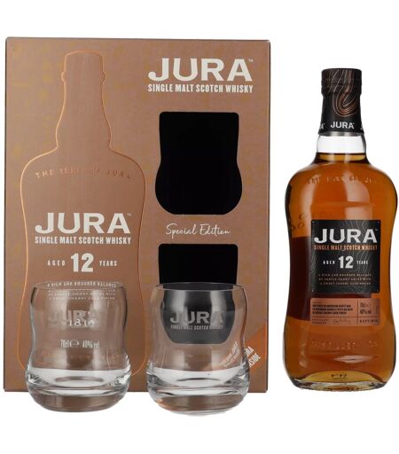 Jura 12 Years Old Single Malt Scotch Whisky 40% Vol. 0,7l in Geschenkbox mit 2 Gläsern