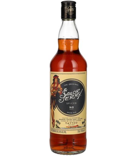 Der Sailor Jerry Spiced Caribbean Rum Tattoo ist ein kräftiger, würziger Spiced Rum mit einem Alkoholgehalt von 40 % Vol. und einer Flaschengröße von 0,7 Litern. Dieser karibische Rum ist inspiriert von der legendären Tattoo-Kultur und dem berühmten Tätowierer Norman "Sailor Jerry" Collins, dessen traditionelle Seefahrer-Tattoos die Flasche schmücken. Sein einzigartiges Geschmacksprofil zeichnet sich durch eine kraftvolle Mischung aus Vanille, warmen Gewürzen und karamellisierten Noten aus, die ihm seinen unverwechselbaren Charakter verleihen. Hergestellt aus hochwertigem karibischen Rum, wird dieser Spiced Rum mit einer geheimen Mischung aus Vanille, Zimt, Muskat und weiteren exotischen Gewürzen verfeinert. Dadurch entsteht ein vielschichtiges und harmonisches Aroma, das sowohl pur als auch in Cocktails eine hervorragende Figur macht. Farbe: Tiefes, warmes Bernstein mit goldenen Reflexen. Nase: Intensiv würzig mit dominanten Vanillenoten, Toffee und braunem Zucker. Feine Anklänge von Zimt, Muskat und einem Hauch von gerösteter Eiche verleihen ihm Tiefe. Geschmack: Vollmundig und angenehm süß mit reichhaltigen Karamell- und Vanillenoten, begleitet von sanften Gewürzen wie Zimt und Muskat. Ein Hauch von schwarzem Pfeffer und würzigem Holz sorgt für eine angenehme Balance. Abgang: Lang und weich mit einer warmen Mischung aus Vanille, Gewürzen und einer leichten Rauchnote, die sanft ausklingt. Der Sailor Jerry Spiced Rum ist ein vielseitiger Genuss, der sowohl pur als auch in Cocktails hervorragend zur Geltung kommt. Besonders gut passt er in einen Sailor Jerry & Cola, wo seine Vanille- und Gewürznoten ideal mit der Süße der Cola harmonieren. Auch in einem Spiced Rum Punch, einem klassischen Dark ’n’ Stormy oder einem Mai Tai entfaltet er seine volle Aromatik. Für ein kulinarisches Pairing eignet er sich besonders zu BBQ-Gerichten, gegrilltem Fleisch, gebrannten Mandeln oder dunkler Schokolade. Wer ihn pur genießen möchte, kann ihn leicht gekühlt oder auf Eis servieren, um seine komplexen Aromen noch besser zu erleben. Ein charakterstarker Spiced Rum mit Seefahrer-Flair – perfekt für alle, die kräftige, würzige Rums lieben! ...