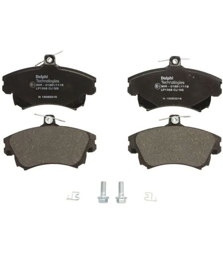 Anzahl Verschleißanzeiger [pro Achse]: 2. Anzahl der Beläge: 4. Anzahl der Federn: 4. Anzahl der Schrauben: 2. Breite [mm]: 130, 130,1. Bremssystem: TRW. Dicke [mm]: 16,5. Hersteller: DELPHI. Herstellernummer: LP1398. Höhe [mm]: 76,9. Index: LP1398. Material: Low-Metallic. Montage Achse: Vorne. Produktart: Bremsbelagsatz. Typprüfung: E1 90R-01881/1118. Verschleißkontakt: Ja. Verschleißkontakttyp: akustisch. WVA-Nummer: 21983. ...