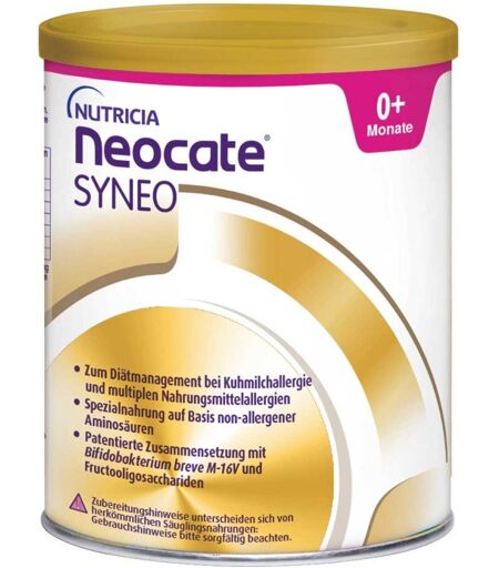 Anwendungsgebiet von Neocate Syneo PulverSpezialnahrung für Babys von Geburt an bei einer Kuhmilchallergie & multiplen Nahrungsmittelallergien.Wirkstoffe / Inhaltsstoffe / ZutatenZutaten von Neocate Syneo Pulver: