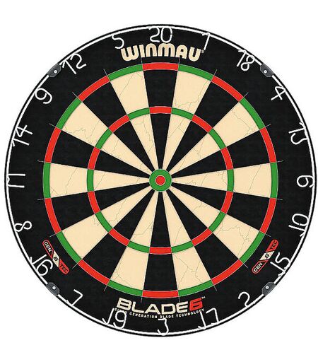Das neueste Dartboard der Blade-Serie bietet atemberaubendes Design, Innovation und Handwerkskunst, mit der neuesten Dartboard-Technologie der sechsten Generation von Winmau Die Blade 6 Dartscheibe bietet hervorragende Spielbarkeit, Haltbarkeit und Leistung Das bahnbrechende Webdesign von Blade verfügt über den neuesten „Density Control™“-Draht für optimale Faserdichte und verbesserte Dartretention in den Double-, Treble- und Bullseye-Zonen für maximale Scoring-Power Der ultradünne, um 60° abgewinkelte Draht lenkt Pfeile in den Wertungsbereich für absolut minimales Abprallen Das vollständig gehärtete Bullseye und das äußere Bullseye, beide mit „Density Control™“-Draht, sind jetzt 25 % dünner Ausgestattet mit dem einfach anzupassenden Rota-Lock-Montagesystem passt das Blade 6 an jede Wand, sodass Sie innerhalb von Minuten mit dem Spielen beginnen können Hergestellt aus feinstem ostafrikanischem Sisal für die anspruchsvollsten Spieler und Umgebungen Blade 6 ist für professionelle Turniere zugelassen und gemäß den offiziellen Spezifikationen der World Darts Federation hergestellt Durchmesser: 45 cm Dicke: 3,8 cm ...