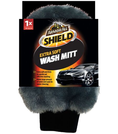 ARMOR ALL SHIELD Extraweicher Waschhandschuh Der extraweiche Armor-All® Shield-Waschhandschuh ist das perfekte Zubehör, wenn es um die perfekte Autowäsche geht. Der besonders weiche und dicke Handschuh fasst eine Menge Wasser und Reinigungsmittel, so geht die Reinigung im wahrsten Sinne des Wortes schnell und bequem von der Hand. Der Handschuh ermöglicht eine bessere Kontrolle der Waschbewegungen, erreicht auch schwierige Stellen mühelos. Eigenschaften: Extraweich und dick für schonendes und gründliches Waschen Nimmt viel Wasser und Reinigungsmittel auf, sorgt für eine schnelle Reinigung Passt-immer-Größe mit elastischem Bündchen – 18 × 24,5 cm Pflegeleicht ...