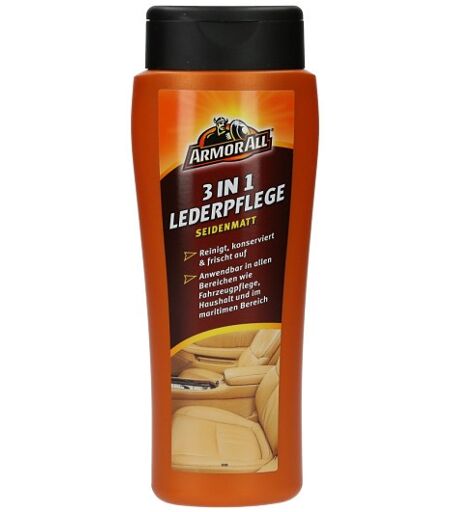ARMOR ALL 3 in 1 Lederpflege seidenmatt (250 ml) ARMOR ALL 3 in 1 Lederpflege, reinigt, konserviert und frischt das Leder auf. Die einzigartige Formel hilft Austrocknung, Rissbildung und Ausbleichen zu vermeiden. Sie stellt die natürliche Farbe und den Glanz wieder her und bildet eine Schutzschicht gegen UV-Licht und Oxidation. Eigenschaften: dringt tief ins Leder ein mit seidenmattem Finish Inhalt: 250 ml ...
